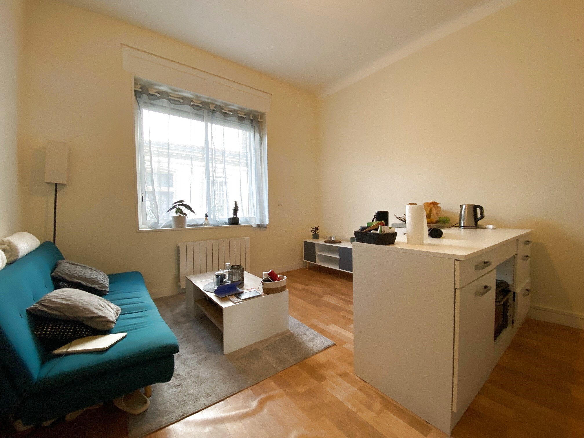 Bordeaux (33000)Au cœur d’un environnement arboré, découvrez ce T2 traversant de 32 m², situé en rez-de-chaussée surélevé dans le recherché quartier Fondaudège.