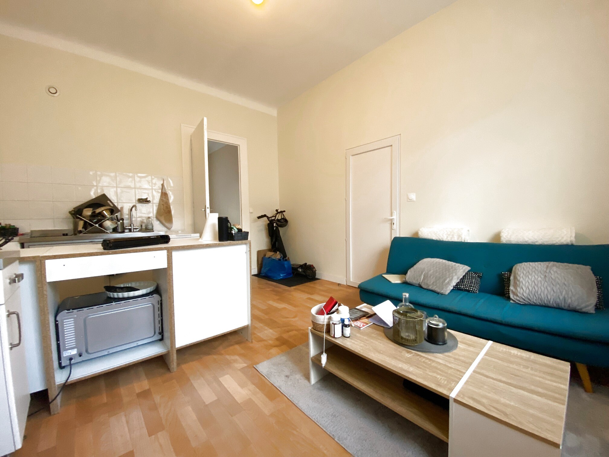 L’appartement se compose d’une pièce de vie lumineuse avec cuisine ouverte, d’une chambre, ainsi que d’une salle d’eau avec W.C.
