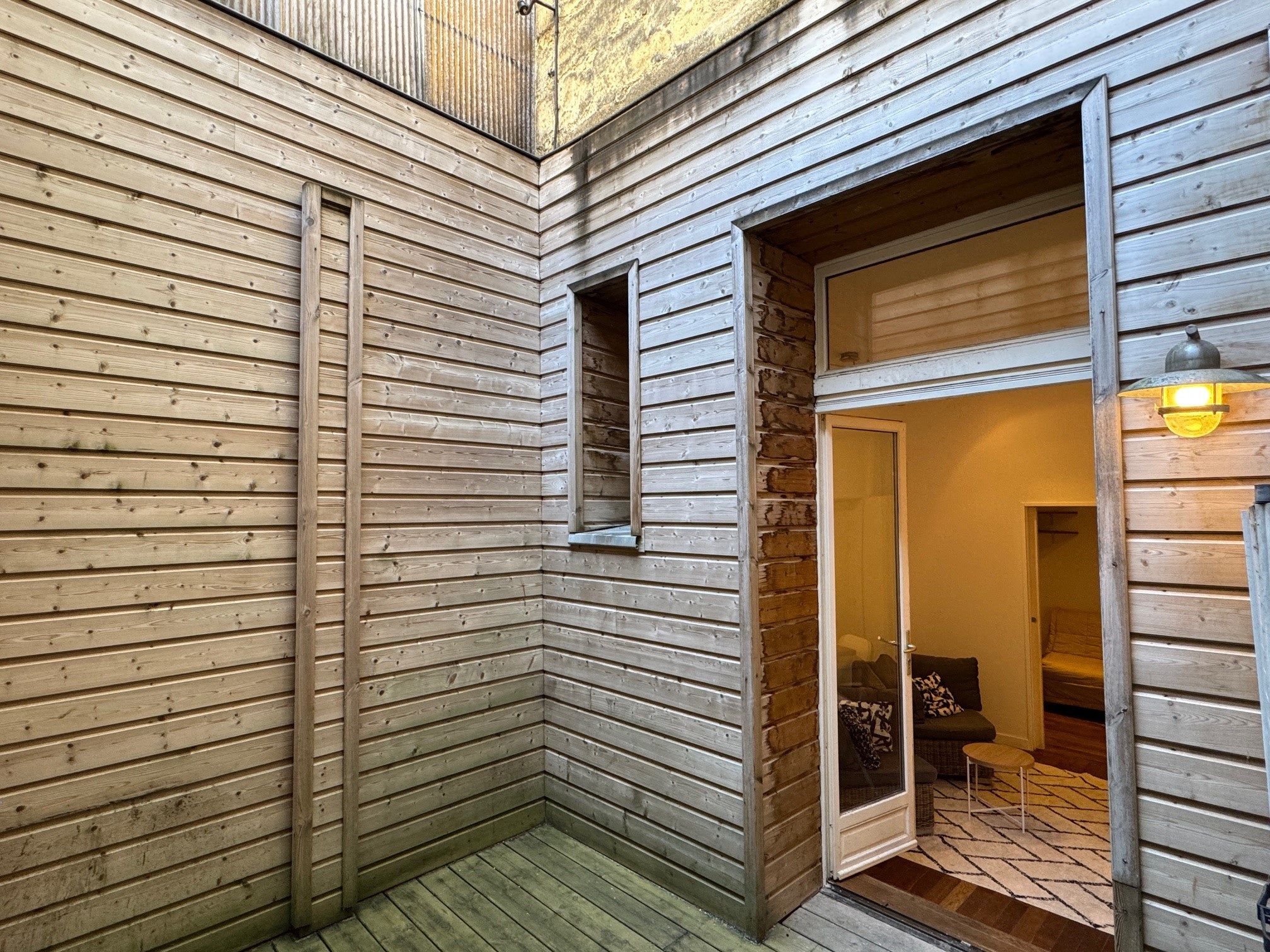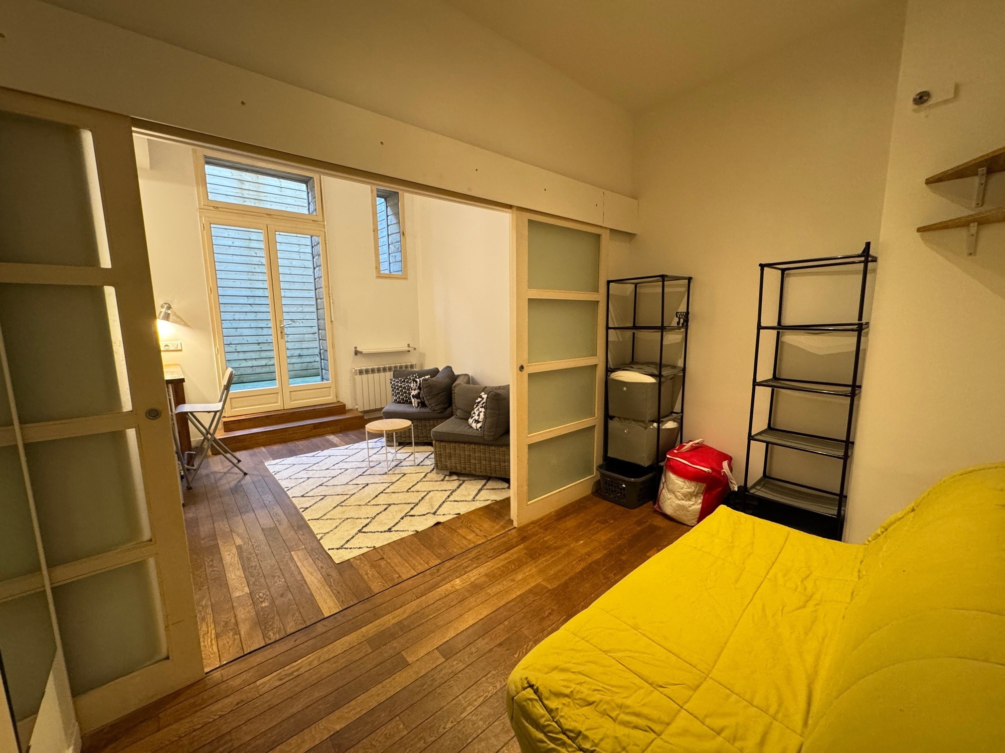 Il se compose d' une pièce principale avec cuisine ouverte, aménagée et équipée, un coin nuit séparé de la pièce principale grâce à des portes à galandage, une salle d’eau avec WC et d'une agréable cour privative sans vis-à-vis, idéale pour profiter d’un espace extérieur au calme en plein Bordeaux.